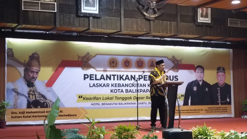 BALIKPAPAN. Dalam prosesi pelantikan Markas Pengurus Wilayah Laskar Kebangkitan Kutai (MPW-LKK) Kota Balikpapan Periode 2025 – 2030 di Ballrooom Hotel New Bena Kutai Sabtu (29/11/2025) dihadiri oleh Ketua Umum Markas Pengurus Pusat (MPP LKK) Prof.Dr.Muhammad Husni Fahruddin. S.Hut, SH. MH dan Sultan Kutai Kartanegara Ing Martadipura Ke-21 Drs H.M Arifin beserta bunda ratu dan kerabat kesultanan.