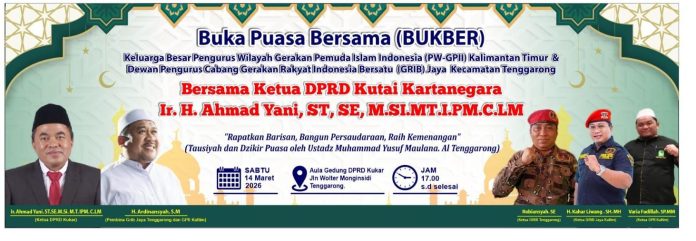 TENGGARONG. Jajaran Dewan Pengurus Cabang Gerakan Rakyat Indonesia ( DPC-Grib) Jaya Kecamatan Tenggarong dan Pengurus Wilayah Gerakan Pemuda Islam Indonesia (PW. GPII) Provinsi Kalimantan Timur menginisiasi acara Buka Puasa Bersama Ketua DPRD Kutai Kartanegara H. Ahmad Yani yang akan diselenggarakan pada Sabtu (14/03/202) di Aula Sekretariat DPRD Kukar Tenggarong.